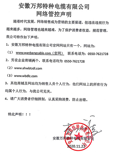 鄭重聲明:安徽萬邦特種電纜有限公司官方網站為:www_wanbangcable_com.xiaomulou.com,除此之外無任何子網站或合作網站,其余均為假冒偽劣。電話:0550-7621728 13485756353 地 址:安徽省天長市滁州高新技術產業開發區經四路29號
